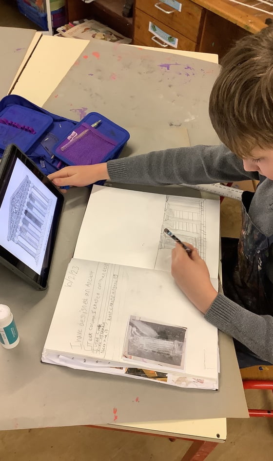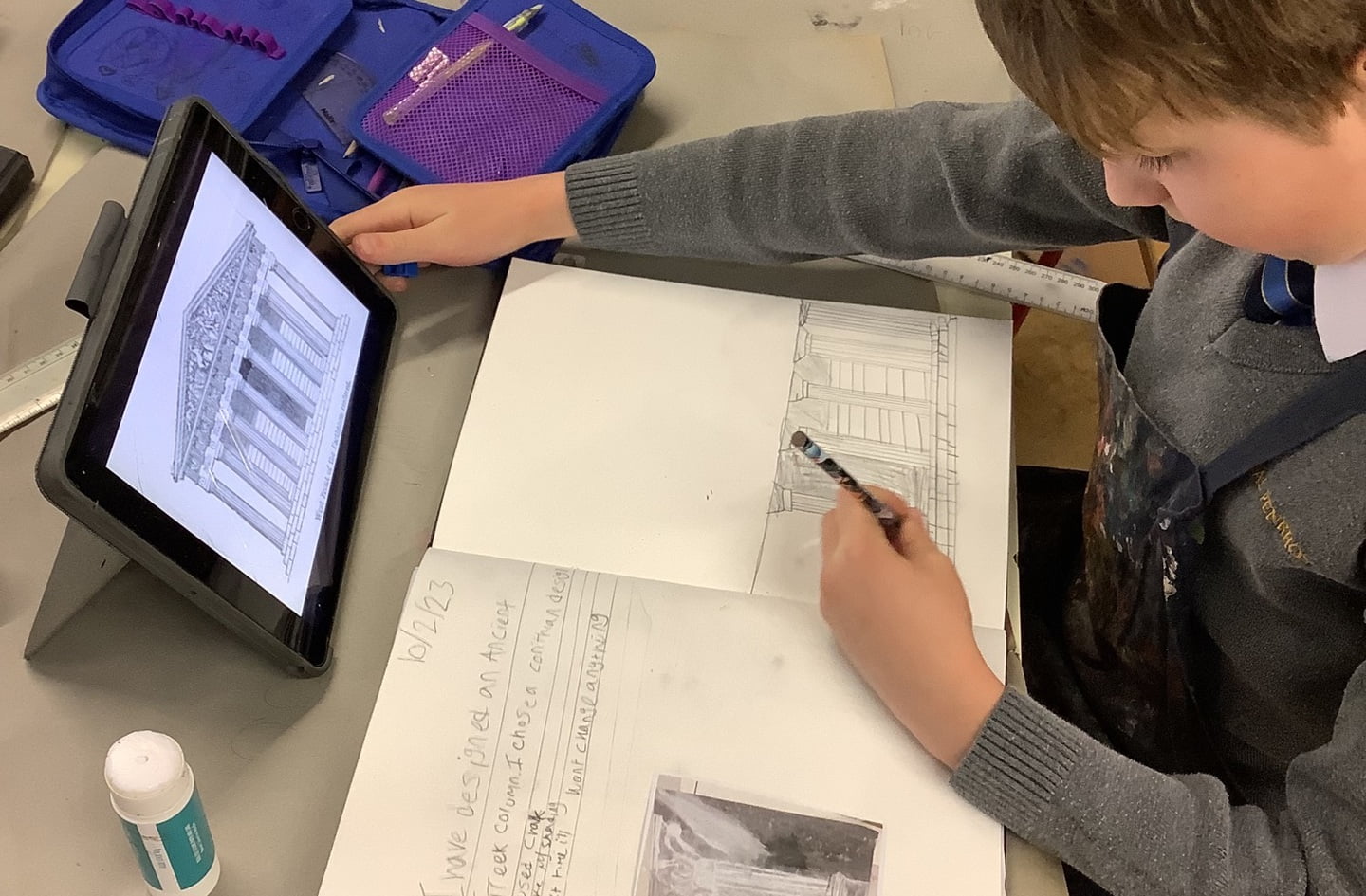 Year 5 and 6 received a lesson in international culture and philosophy from the comfort of the Prep's Art Studio as they completed studies in Ancient Greek architecture and Japanese wabi-sabi.